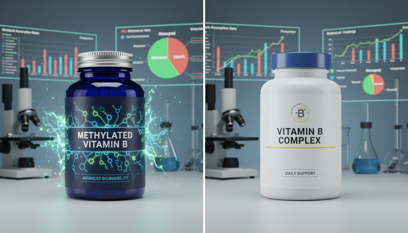 結論から述べると、メチル化型ビタミンB群の生体利用率は通常型の2-3倍高く、特にMTHFR遺伝子変異を持つ人では最大5倍の差が生じる。通常型は体内でメチル化される必要があるが、メチル化型は直接利用できるためである。